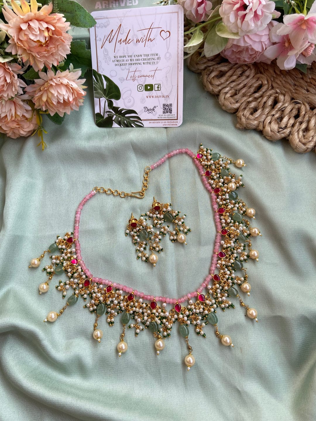 Be the first to review “Pastel Beads Pearl Necklace with Earrings”