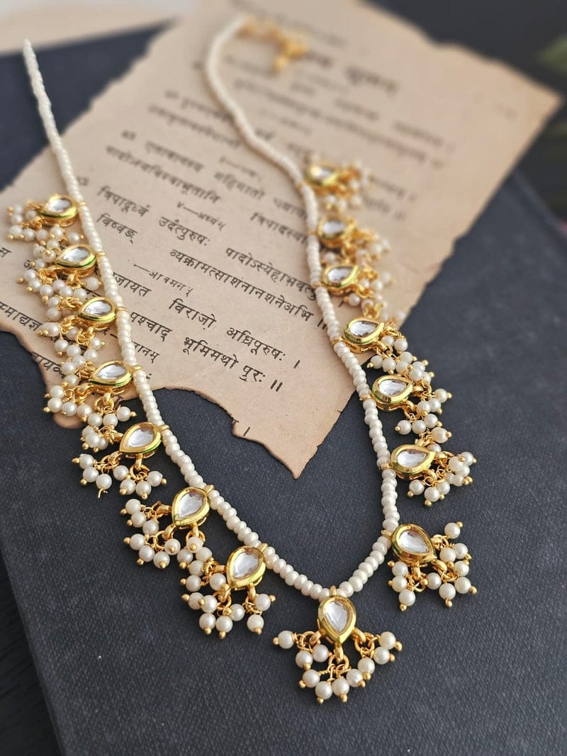 Sabyasachi Inspired Kundan Designer Bridal Long Necklace Set. This exquisite set, designed to reflect the timeless beauty of traditional Indian jewelry, is perfect for brides and special occasions. The set includes a stunning long necklace, matching earrings, and a maangtika, all adorned with intricate Kundan work that exudes luxury and sophistication.