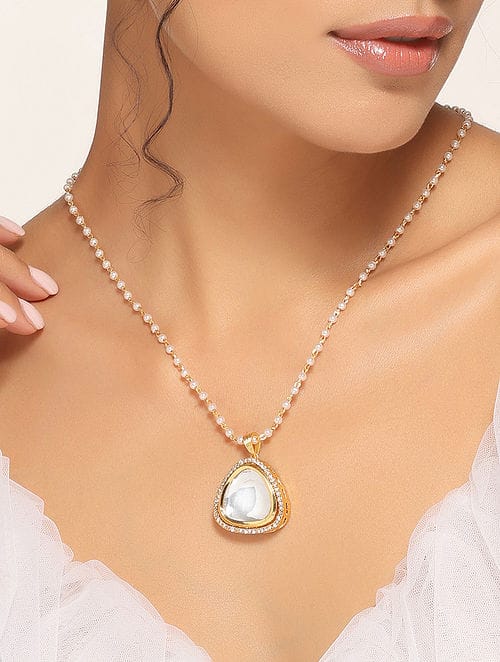 Gold-Plated Kundan-Studded & Beaded Nacklace