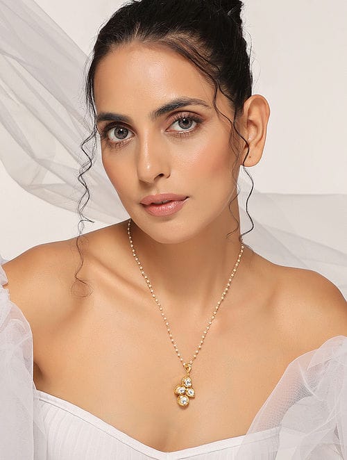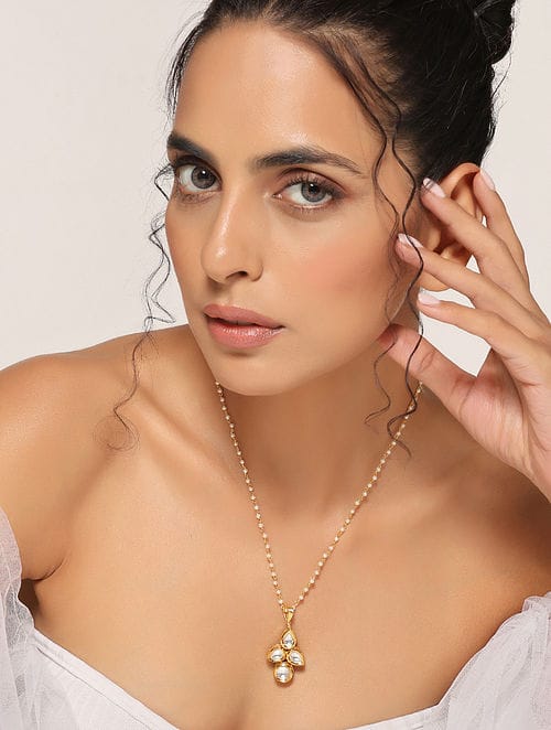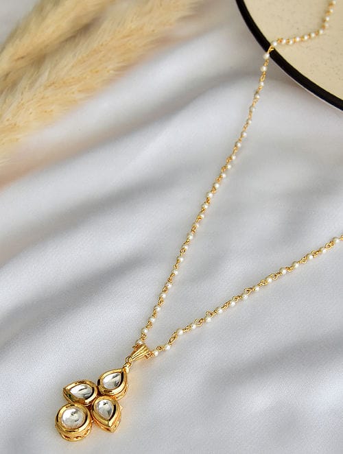 Gold-Plated Kundan-Studded & Beaded Nacklace