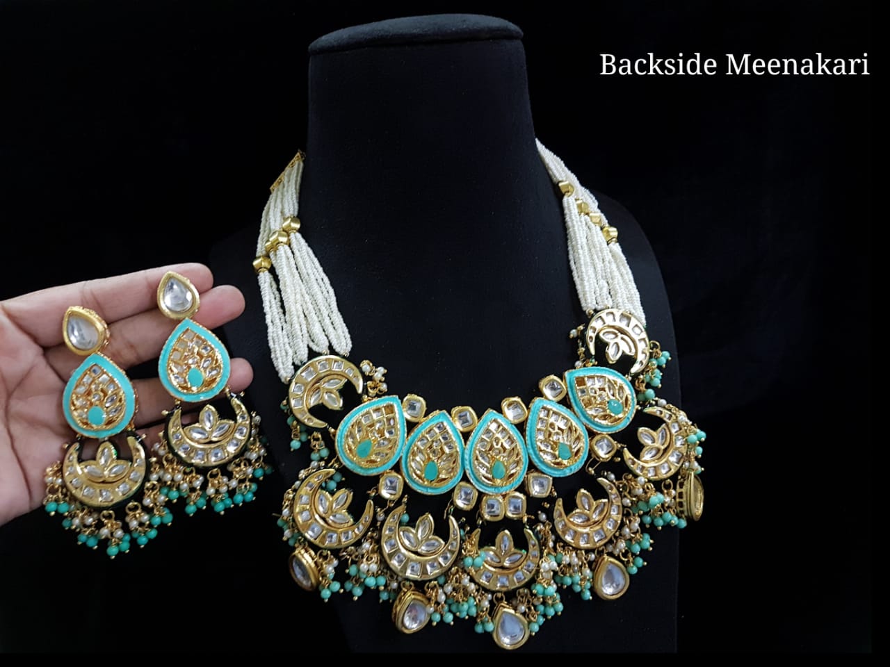 Victorian Uncut Polki Faux Diamond Necklace & Earring Set