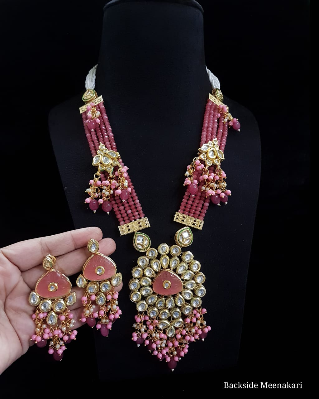 Gold Plated Stones Studded & Beaded Jewellery Set