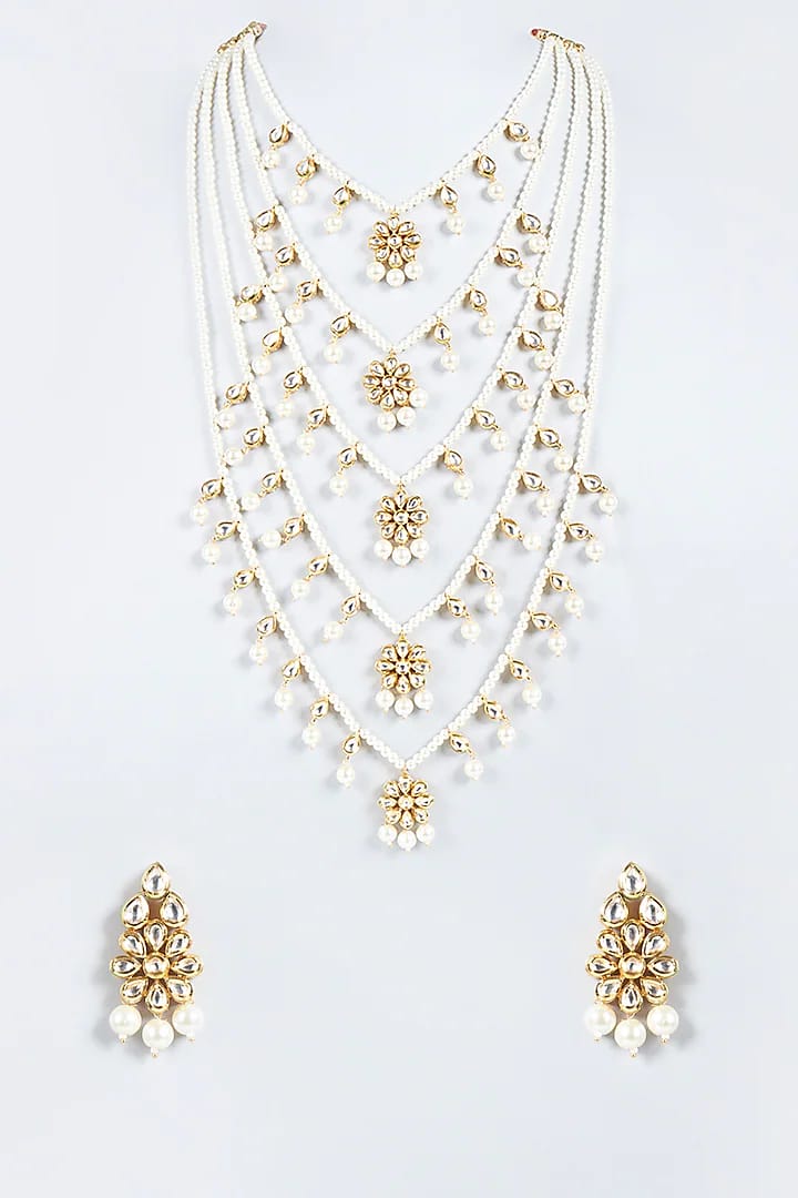 Designer Pearl Beaded Kundan Choker Necklace With Earrings