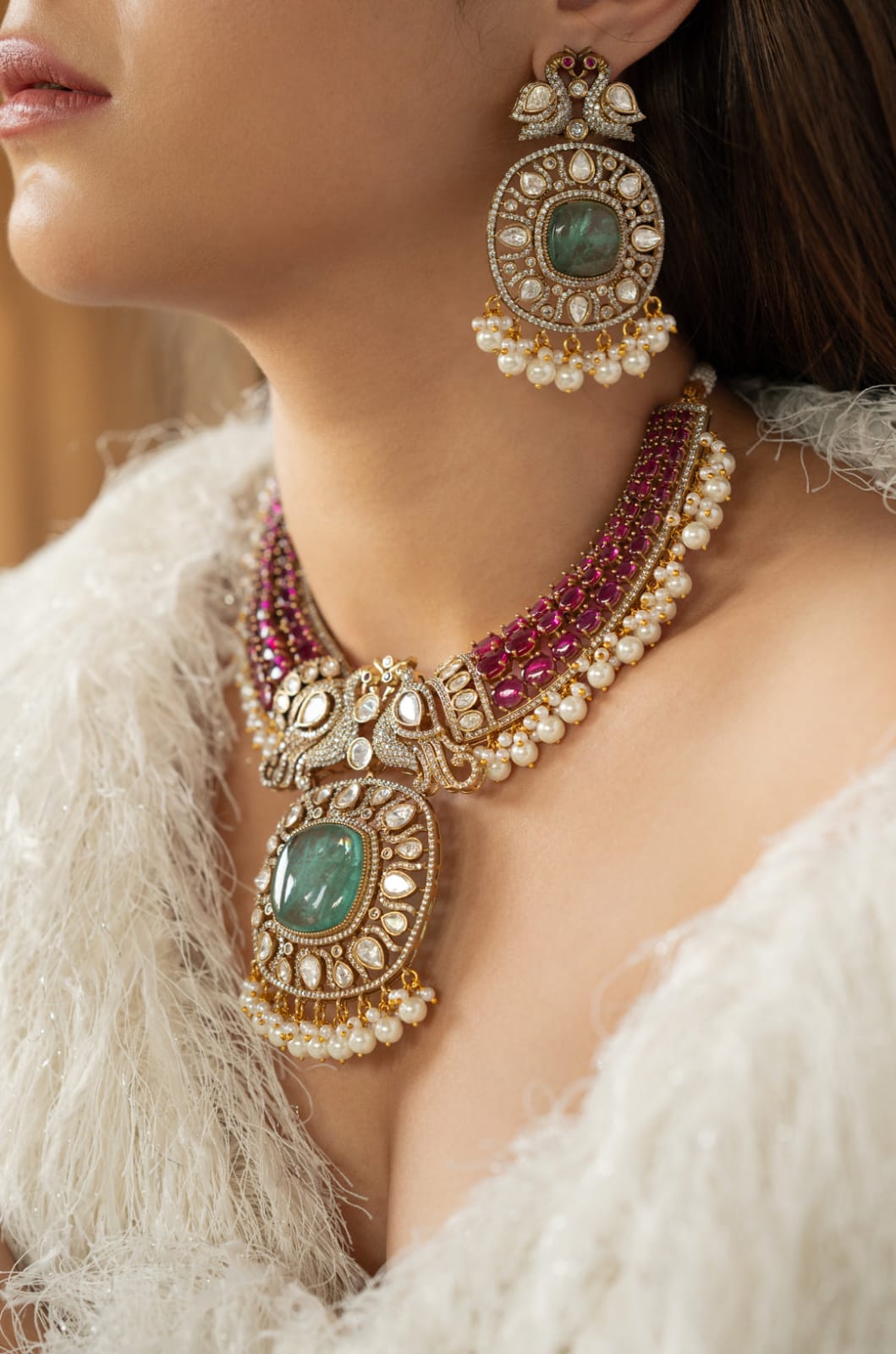 Sabyasachi Inspired Kundan Designer Bridal Long Necklace Set. This exquisite set, designed to reflect the timeless beauty of traditional Indian jewelry, is perfect for brides and special occasions. The set includes a stunning long necklace, matching earrings, and a maangtika, all adorned with intricate Kundan work that exudes luxury and sophistication.