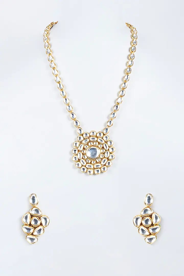 Victorian Uncut Polki Faux Diamond Necklace & Earring Set