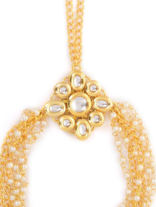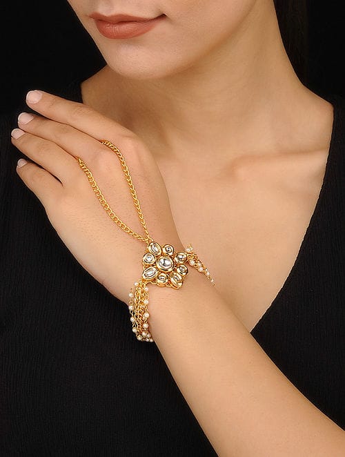 Be the first to review “Elegant Kundan Gold Plated White Beads Hand Harness Bracelet (Pack Of 2)” Cancel reply