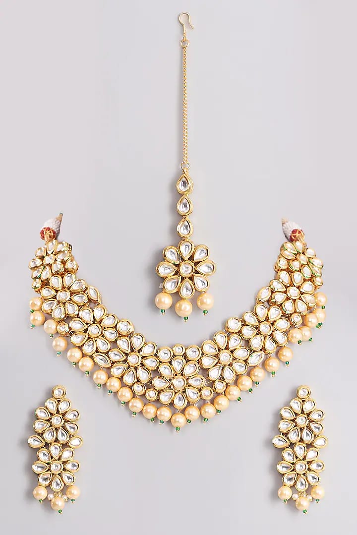Gold Plated Stones Studded & Beaded Jewellery Set