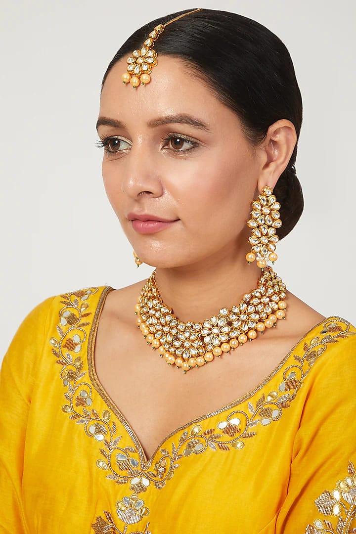Gold-Plated Kundan-Studded & Beaded Nacklace