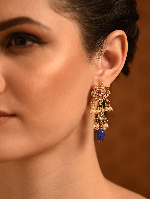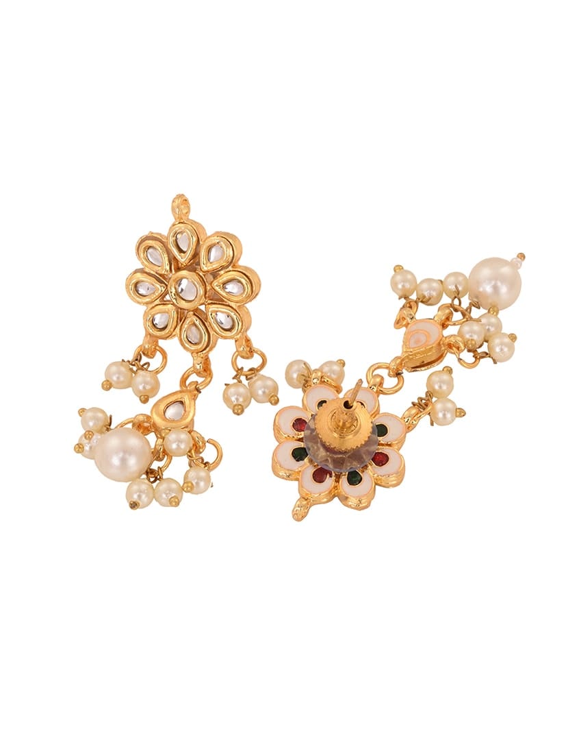 Gold-Plated Kundan-Studded Contemporary Chandbali Earrings