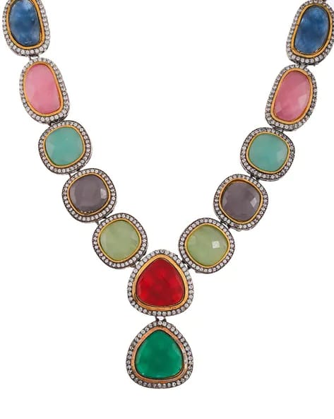 Victorian Uncut Polki Faux Diamond Necklace & Earring Set