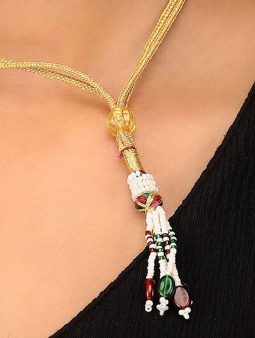 Gold Plated Stones Studded & Beaded Jewellery Set