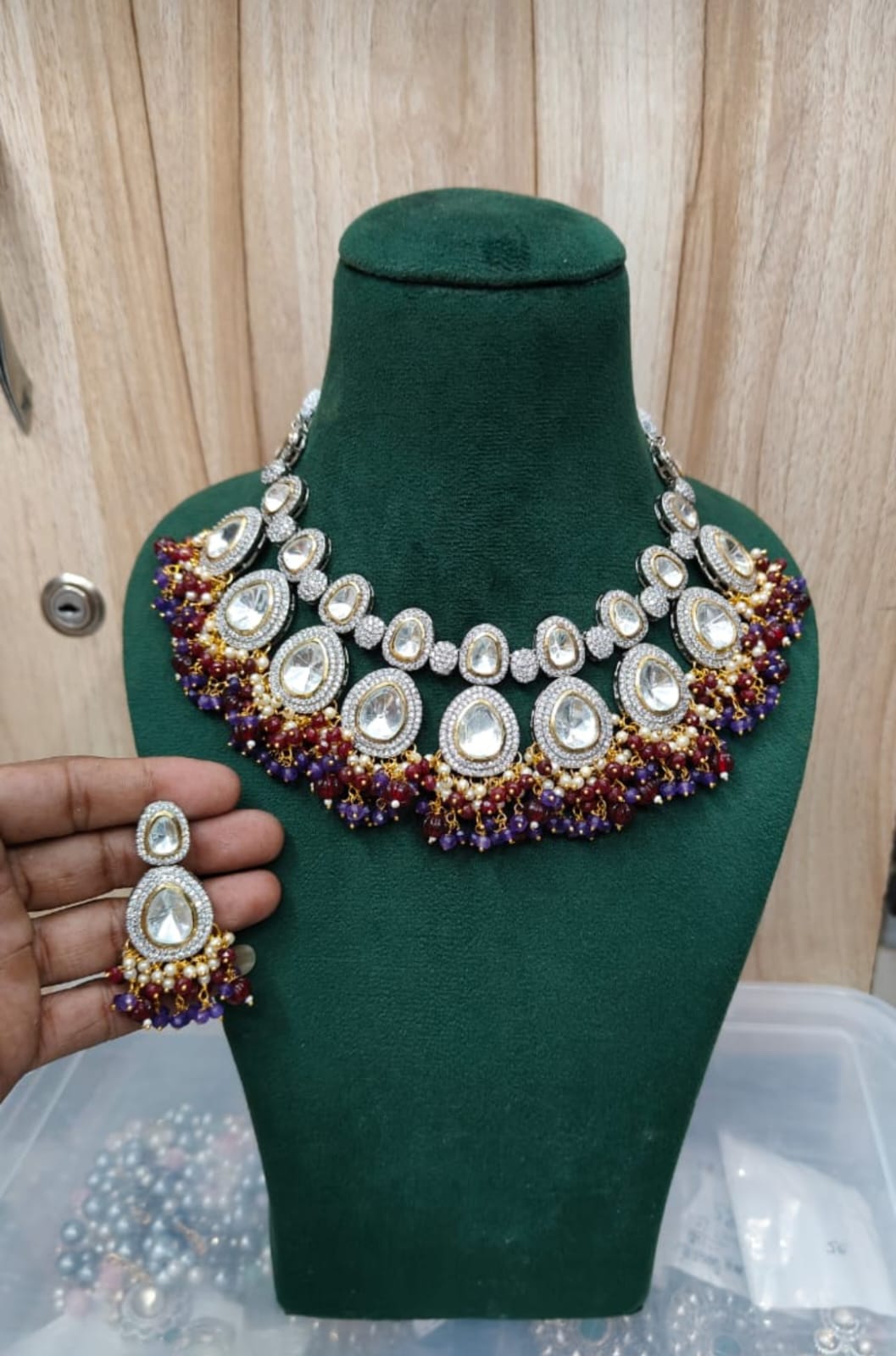Victorian Uncut Polki Faux Diamond Necklace & Earring Set
