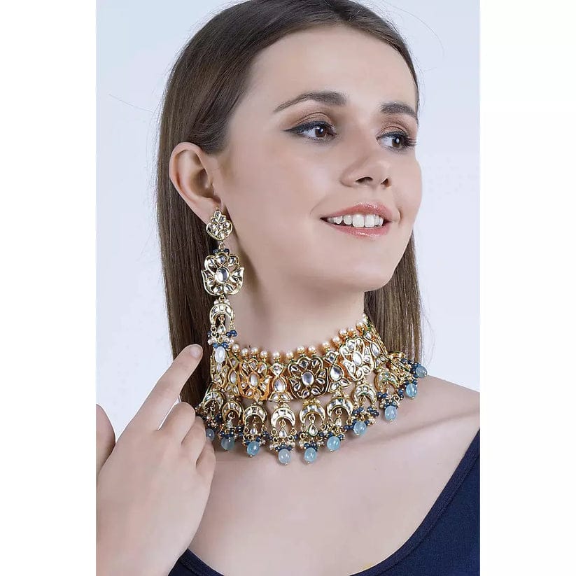 Designer Pearl Beaded Kundan Choker Necklace With Earrings