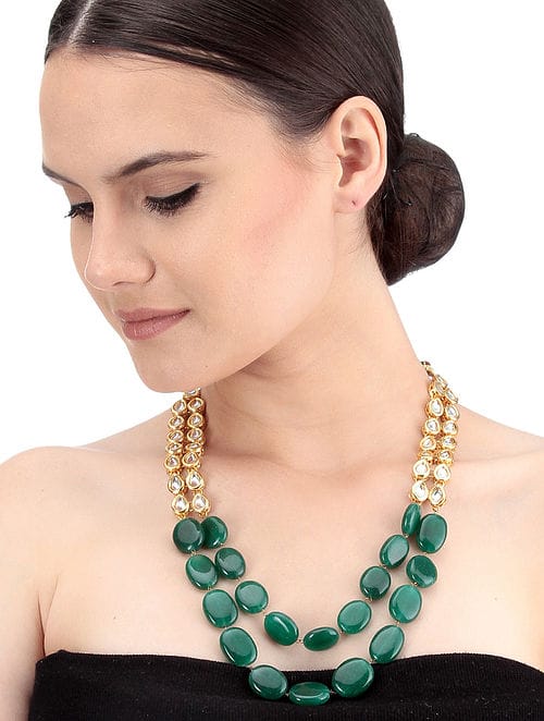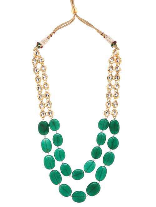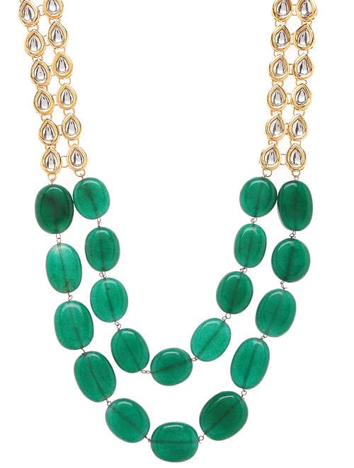 Gold Plated Stones Studded & Beaded Jewellery Set
