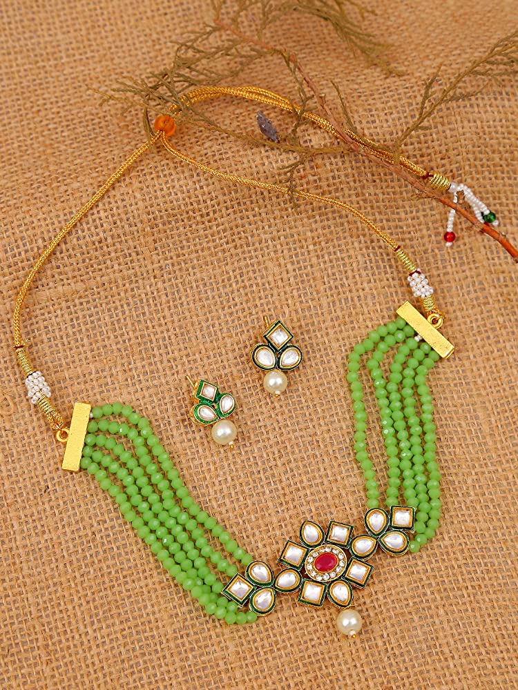 Gold-Plated Kundan-Studded & Beaded Nacklace
