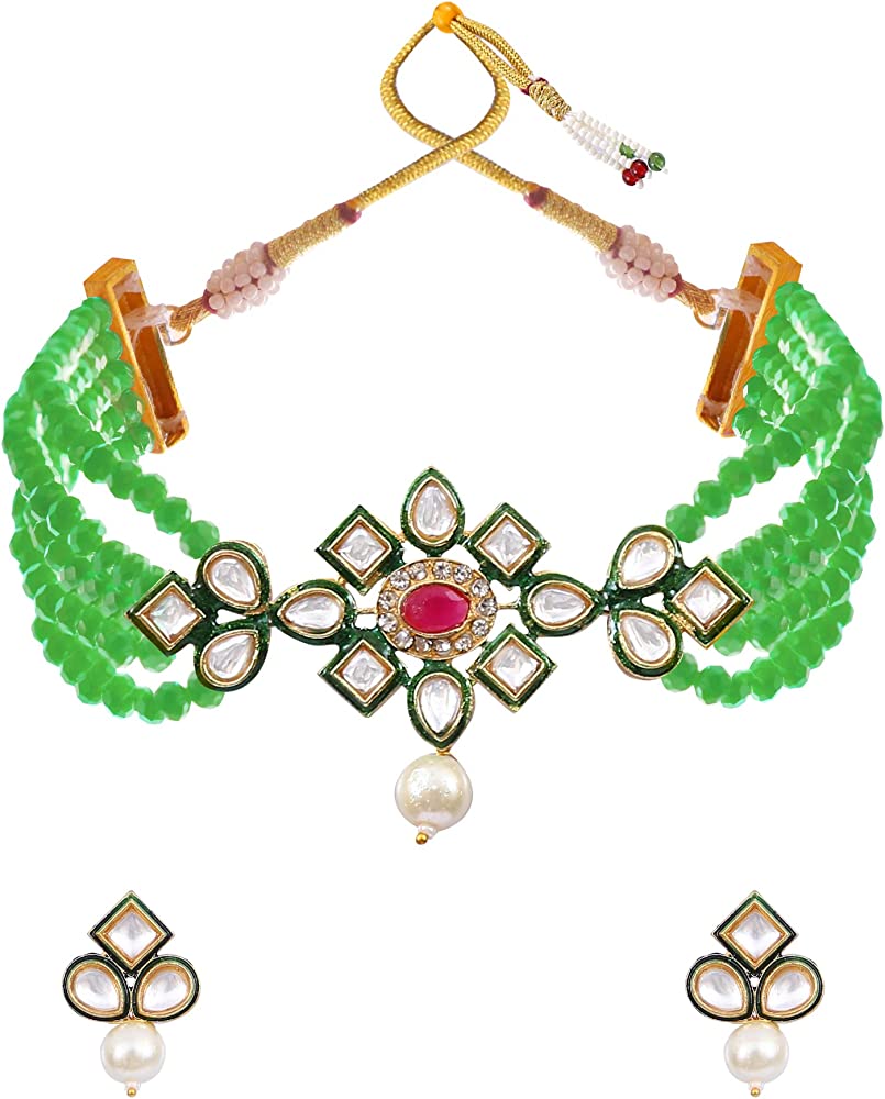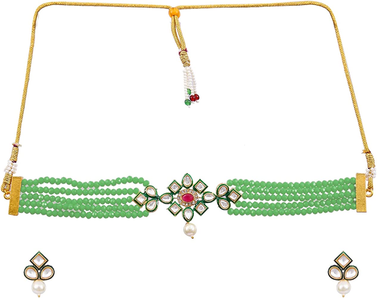 Gold Plated Stones Studded & Beaded Jewellery Set