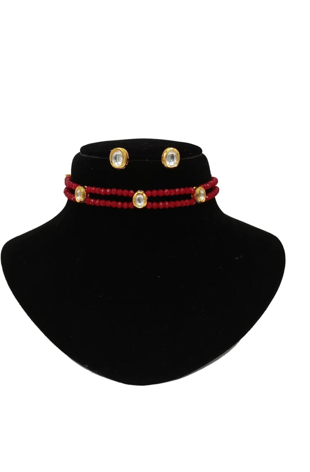 Gold Plated Stones Studded & Beaded Jewellery Set