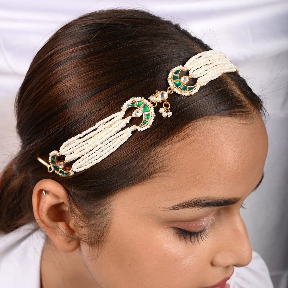 Exclusive Studded Gold Plated Headband With Enamel Work Traditional Bridal Matha Patti