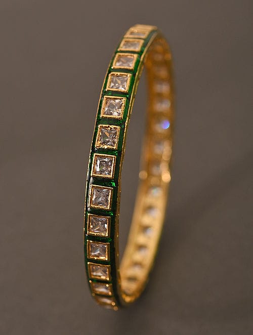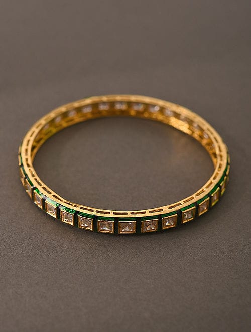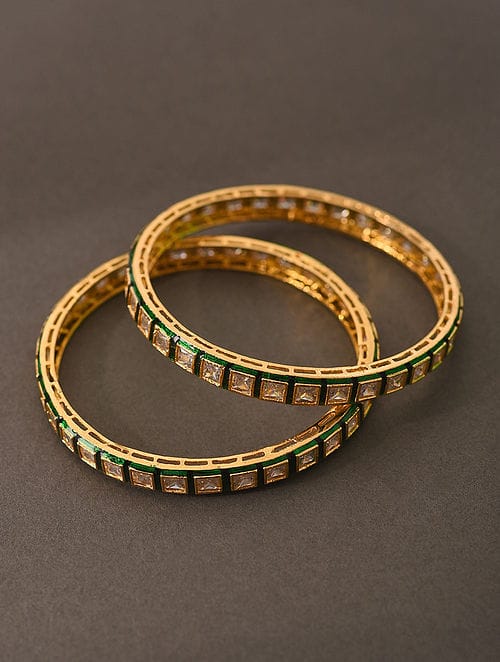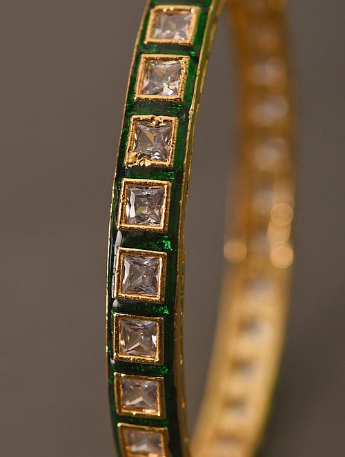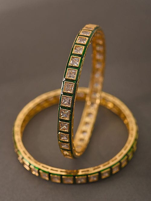 Be the first to review “Gold Finish Green Enamelled & Kundan Polki Bangles (Set of 2)” Cancel reply