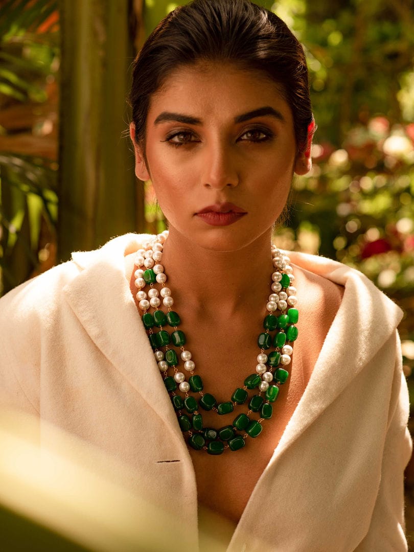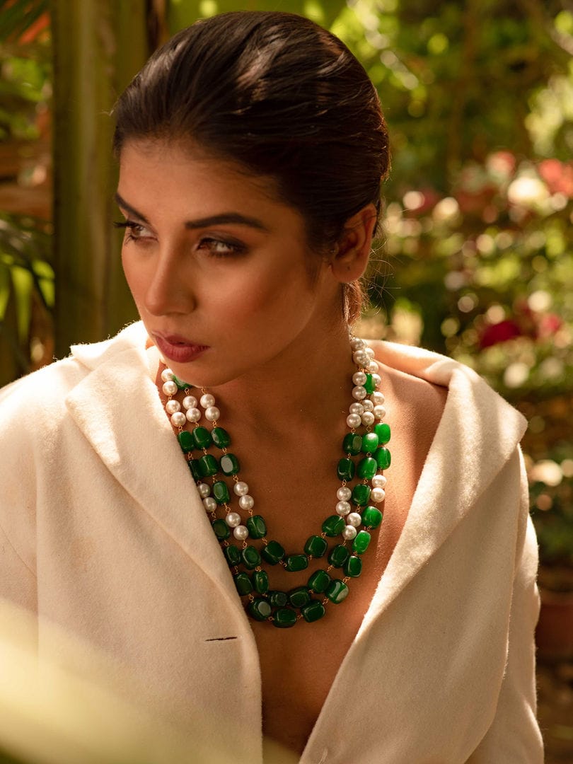 Gold Plated Beads Victorian Polish Necklace with Earrings