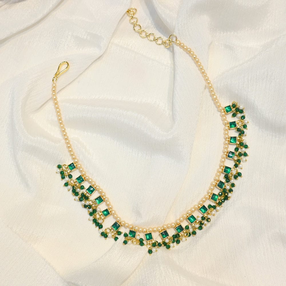 Green Crystals, Stones Drop Embellished Choker Set