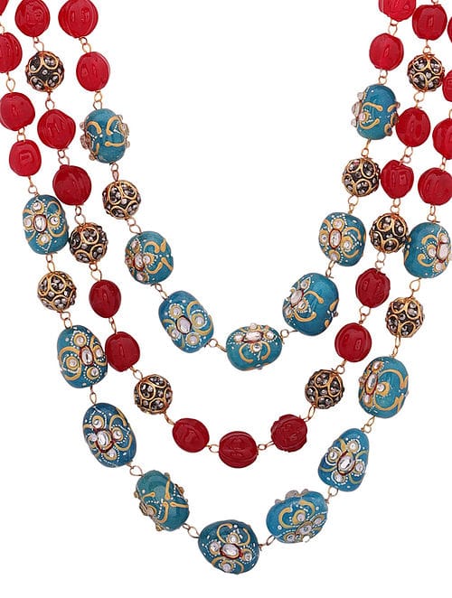 Gold Plated Beads Victorian Polish Necklace with Earrings