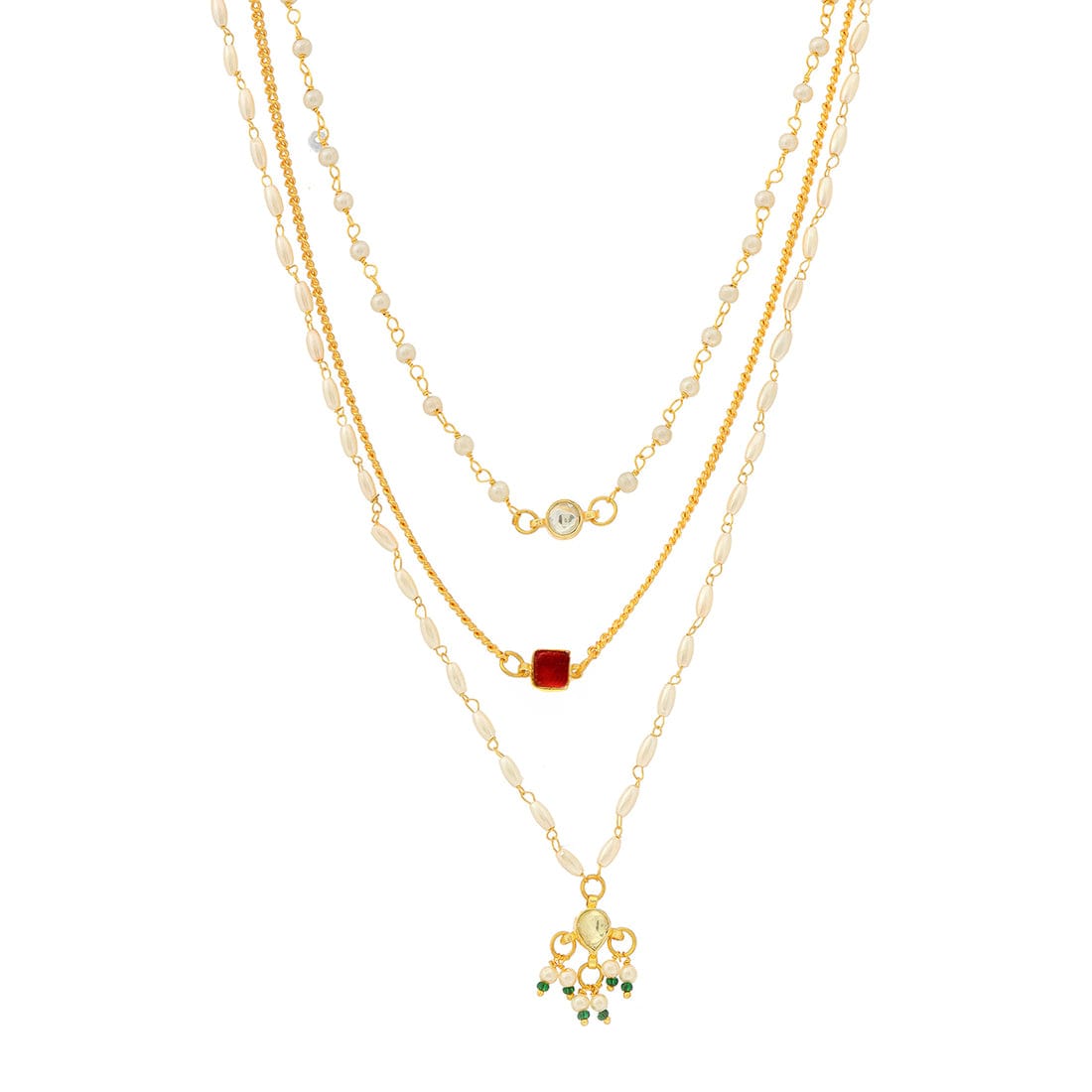 Green Pearls Kundan Drop Embellished Necklace Set