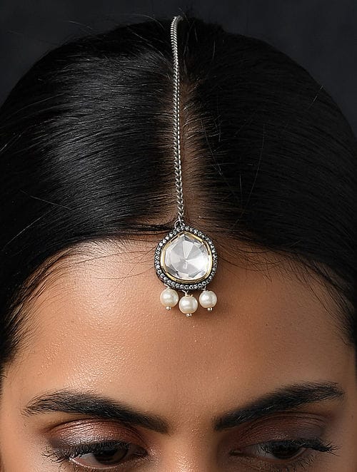 Gold-Toned Off-White Beaded Maangtikka
