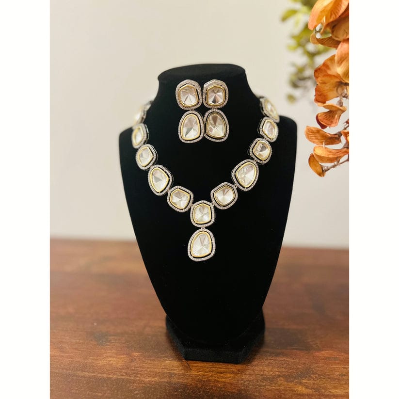 Victorian Uncut Polki Faux Diamond Necklace & Earring Set