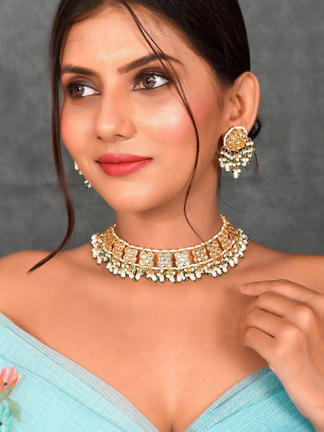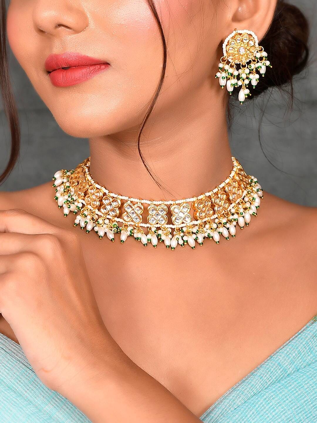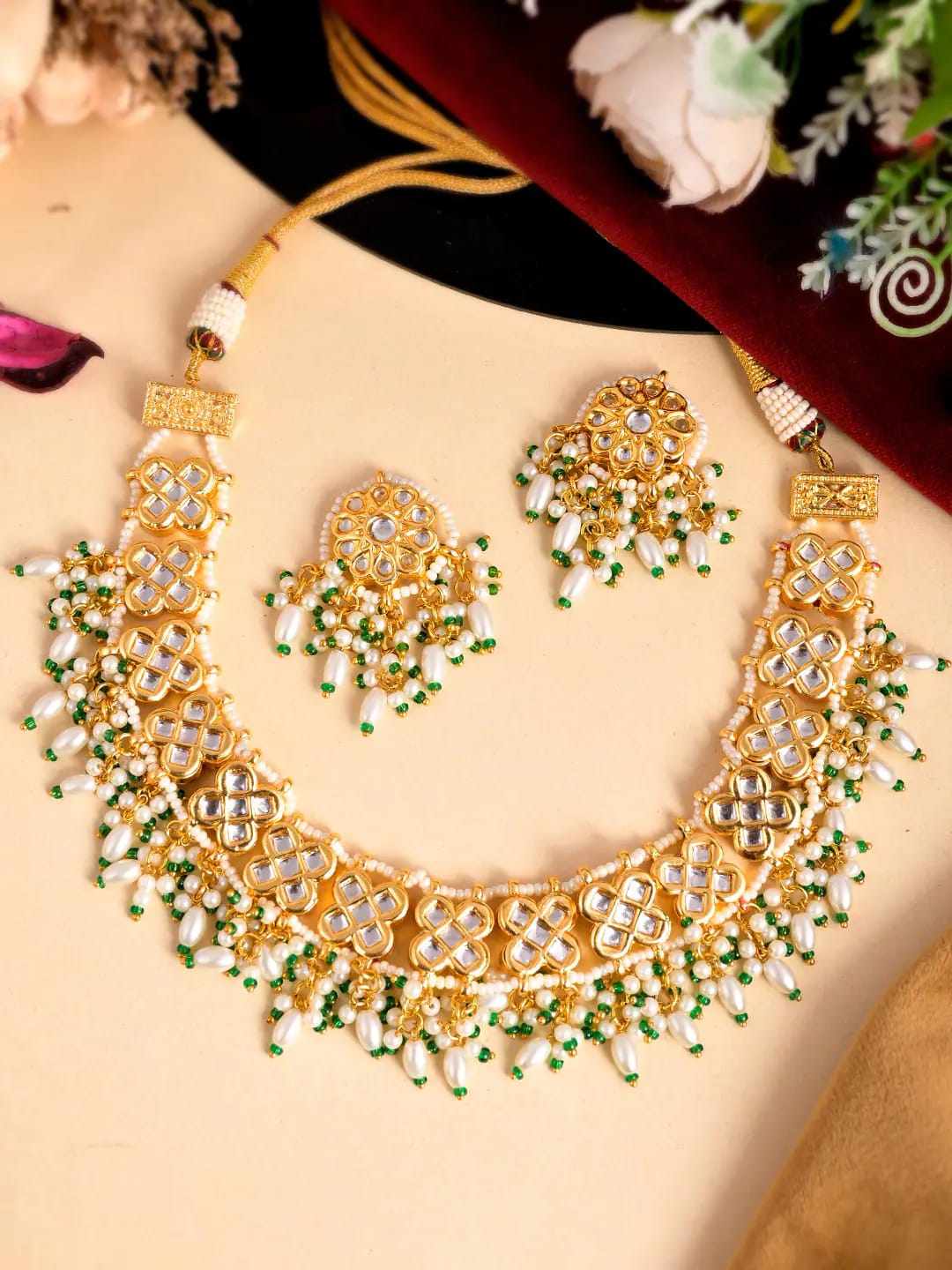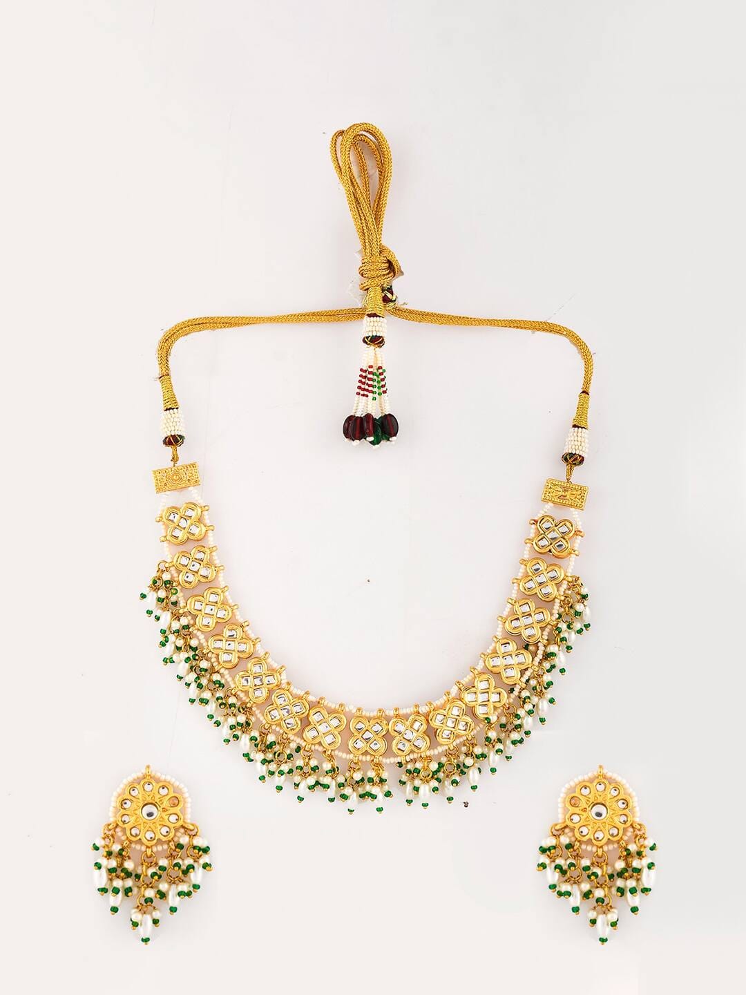 Gold-Plated Kundan-Studded & Beaded Nacklace