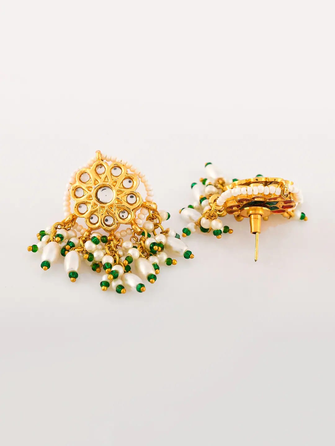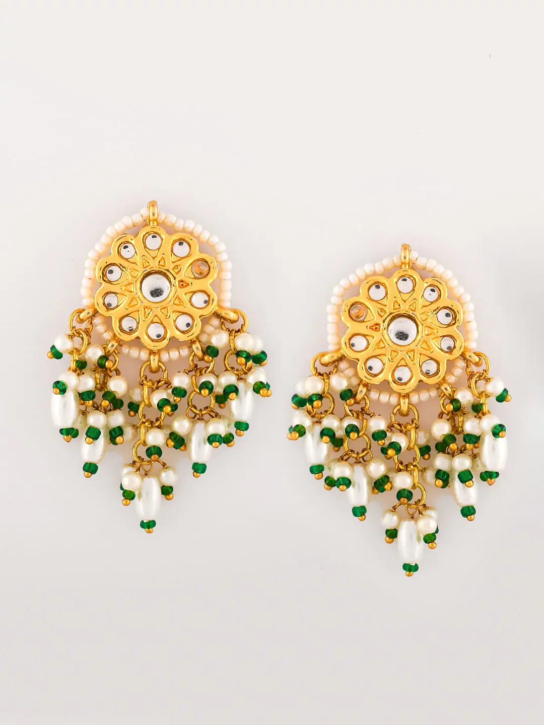 Green Fresh Water Pearls Stones Embellished Multi Layered Necklace